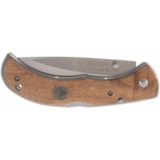 Нож ЗУБР "премиум" норманн складной, эргономичная рукоятка с деревянными накладками, 220мм/лезвие 95мм
