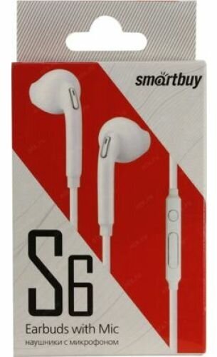 Наушники-вкладыши с микрофоном SmartBuy S6, 1.1м, белый информация: