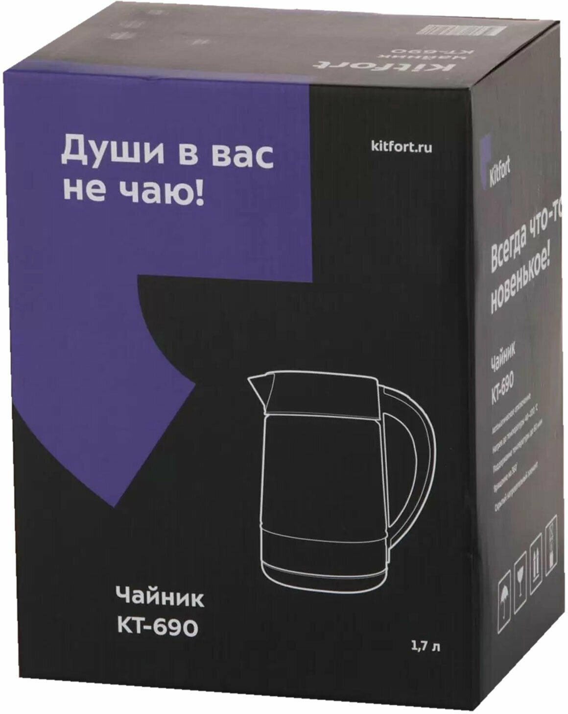 Чайник электрический Kitfort KT-690 1.7л. 2200Вт прозрачный корпус: стекло/пластик (КТ-690) 7 450 ₽