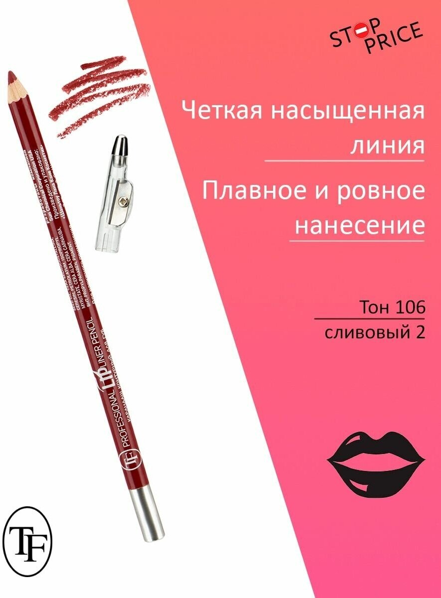 TF Cosmetics Карандаш для губ Professional Lipliner, с точилкой, №106 слива информация: