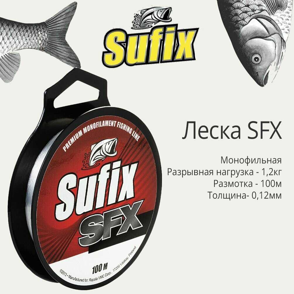 Леска Sufix SFX 100 м, 0.12 мм, прозрачная, 1.2 кг