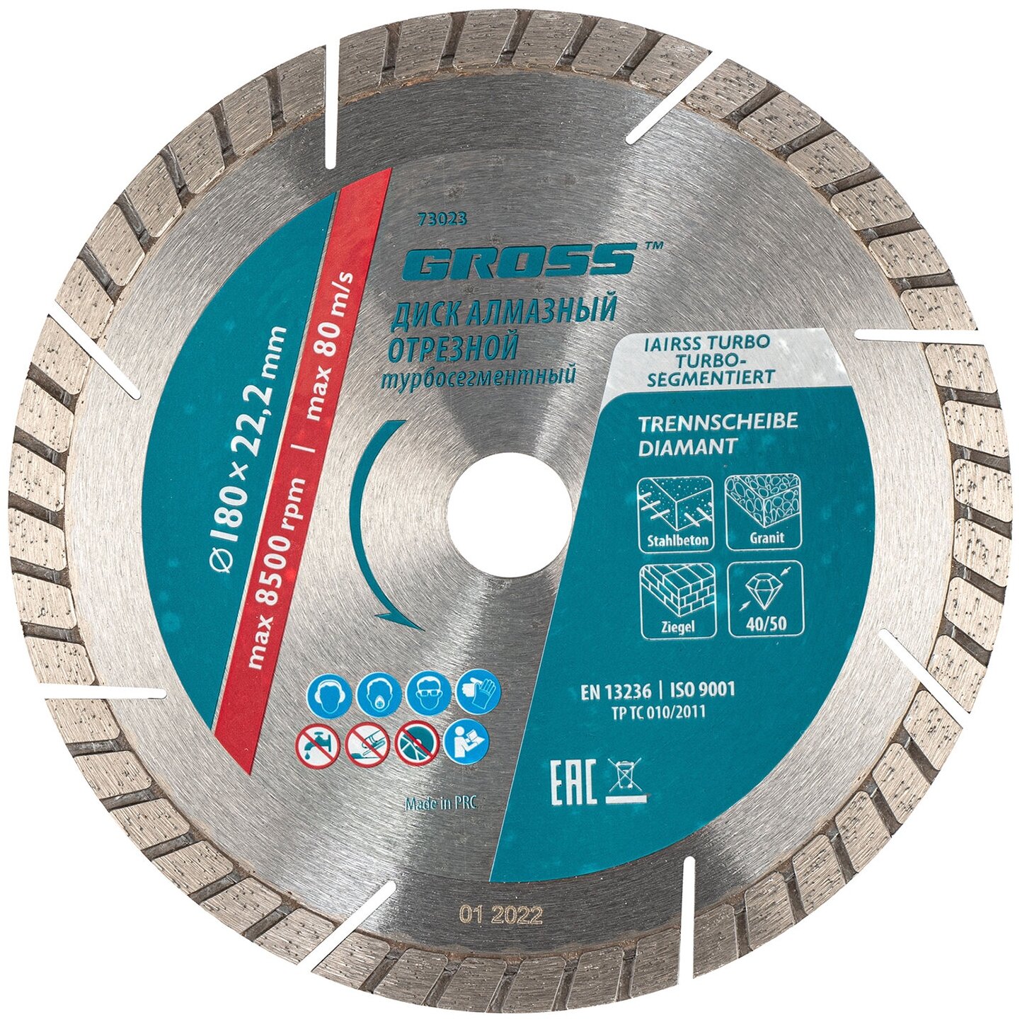 10 цен на Диск алмазный ф 180х22,2 мм., турбо-сегментный, сухое резание Gross [73023]