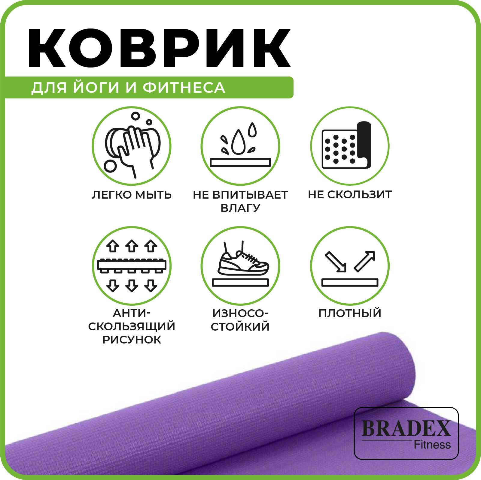 Коврик для йоги и фитнеса Bradex SF 0397, 173х61х0,3 см, фиолетовый Bradex 7086760 . информация:
