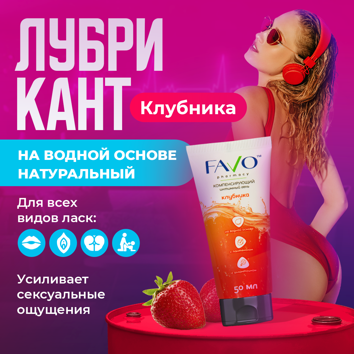 Лубрикант / Интимная гель-смазка FAVO "Сладкая клубника" 50 мл 349 ₽