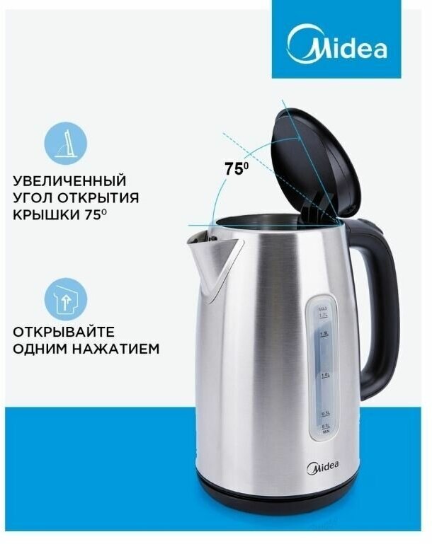 Чайник электрический бытовой Midea MK-8028 silver 2200 Вт, 1.7 л