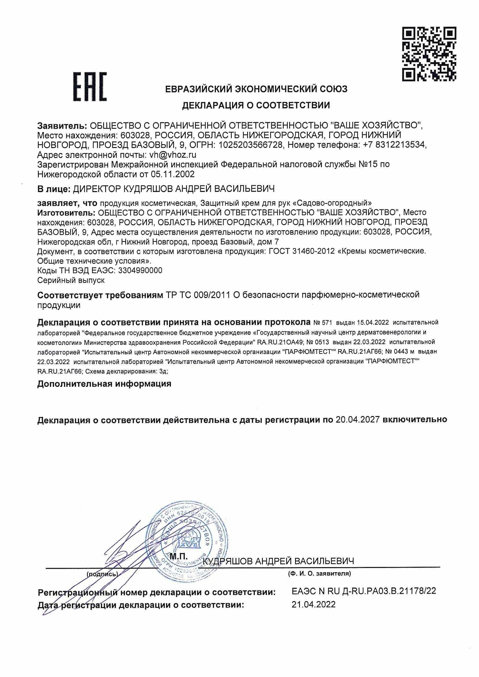 Ваше хозяйство Крем садово-огородный для ухода за кожей рук 75 мл информация: