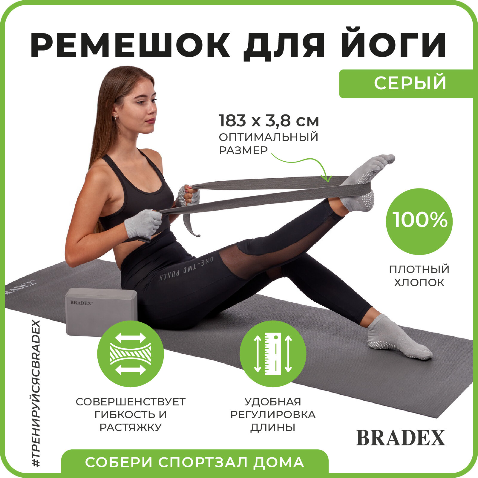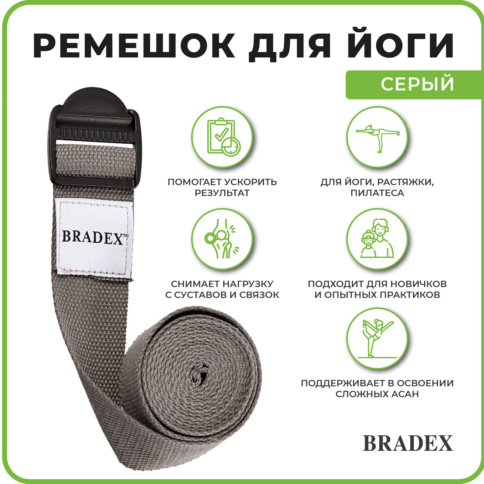 Ремешок для йоги, Bradex (фитнес-инвентарь, серый, SF 0410)