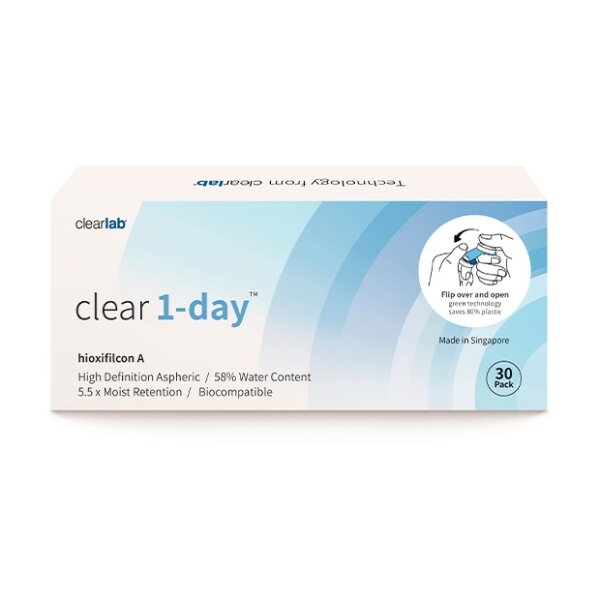 Clear 1-Day 30 линз В упаковке 30 штук Оптическая сила -5.25 Радиус кривизны 8.7