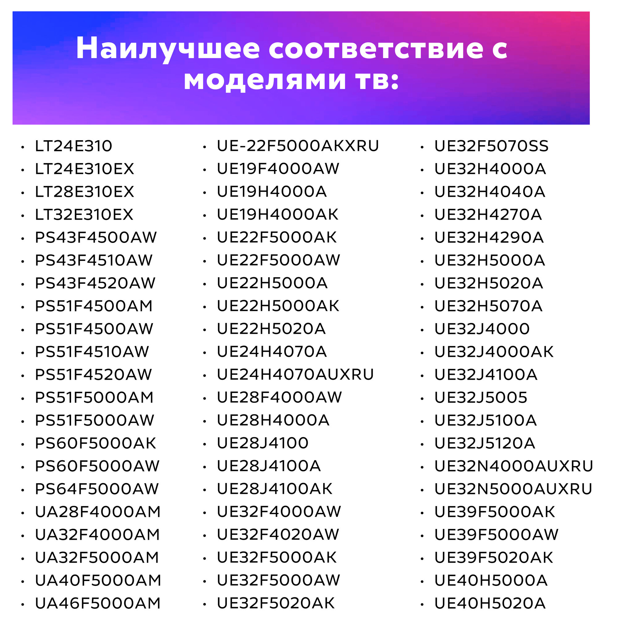 Пульт ДУ Huayu AA59-00741A для телевизоров Samsung PS43F4500AW/PS43F4510AW/PS43F4520AW/PS51F4500AM/PS51F4500AW/PS51F4510AW, черный 320 ₽