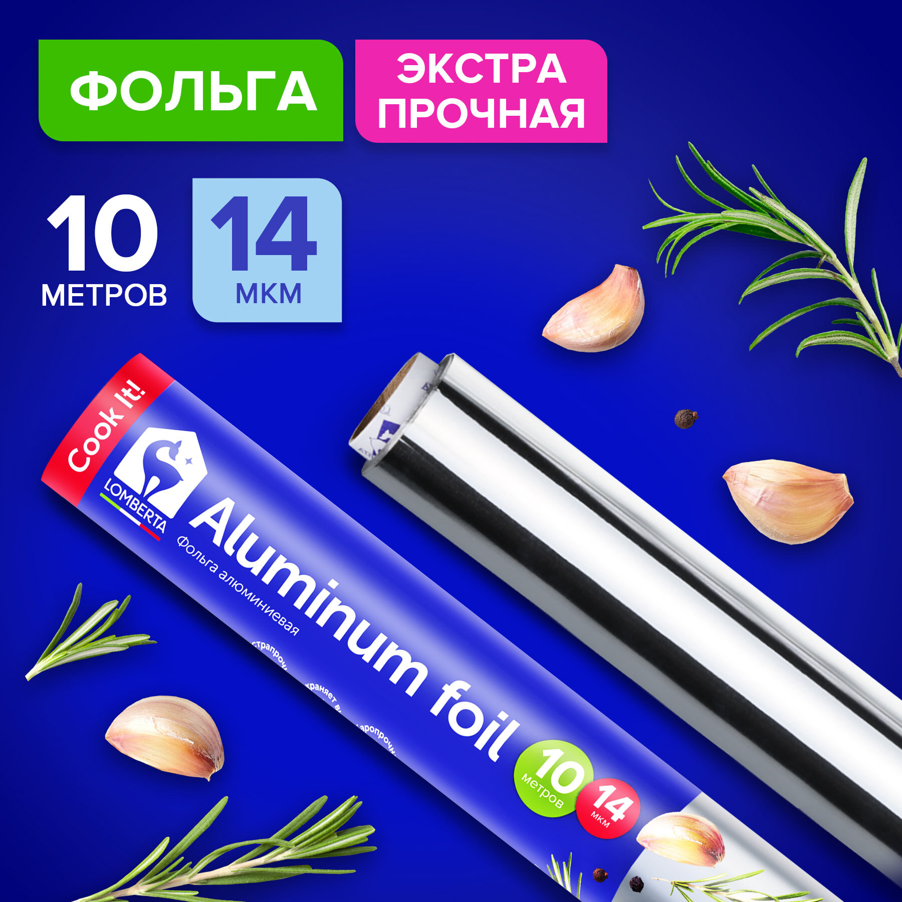 10 цен на Фольга пищевая Lomberta прочная 14 мкм, алюминиевая в рулоне 10 метров для запекания/выпечки/гриля/хранения еды и окрашивания волос, профессиональная
