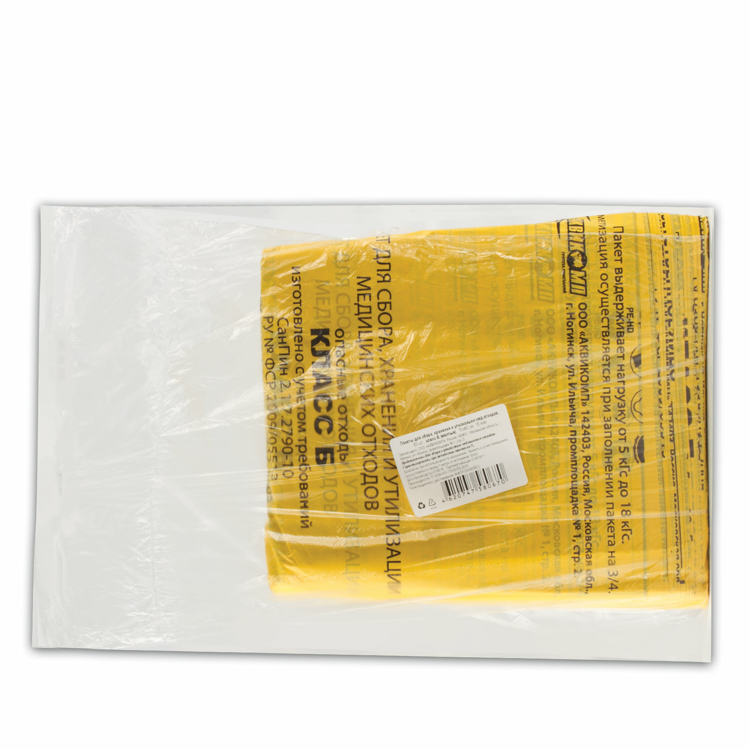 Мешки для мусора Мешки для мусора медицинские комплект 50 шт., класс Б (желтые), 80 л, 70х80 см, 14 мкм, аквикомп