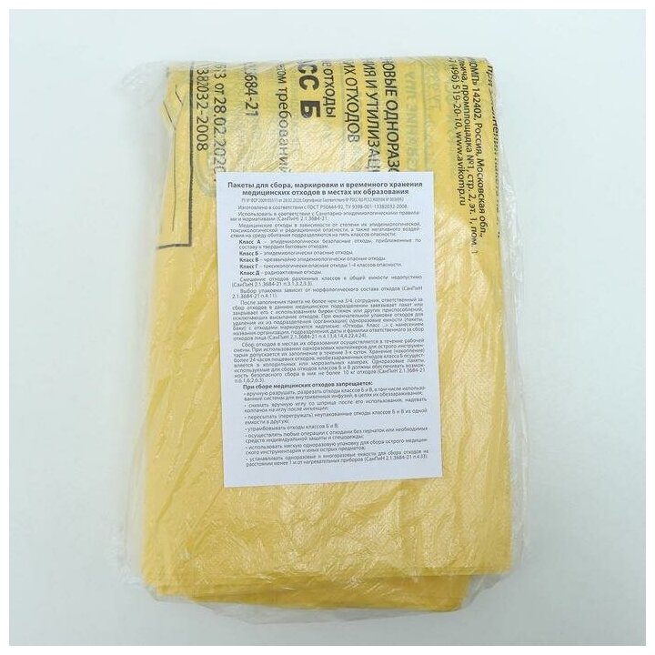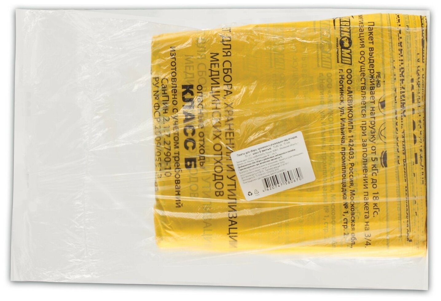Мешки для мусора медицинские комплект 50 шт., класс Б (желтые), 80 л, 70х80 см, 14 мкм, аквикомп (арт. 104674) информация: