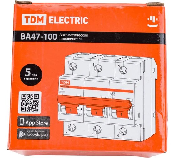 Автоматический выключатель TDM ЕLECTRIC ВА 47-100 3P (D) 10kA