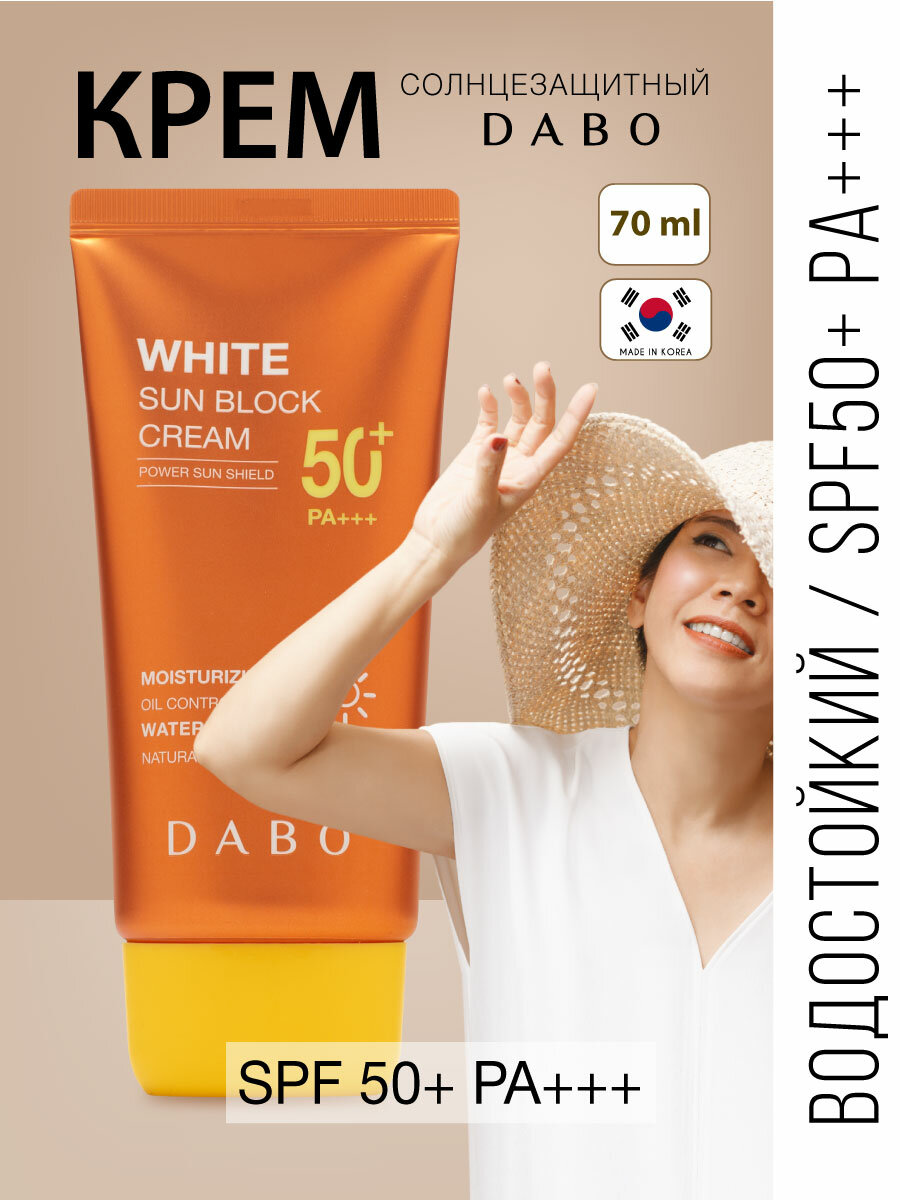 Водостойкий солнцезащитный крем SPF 50+ PA+++, 70мл, DABO информация:
