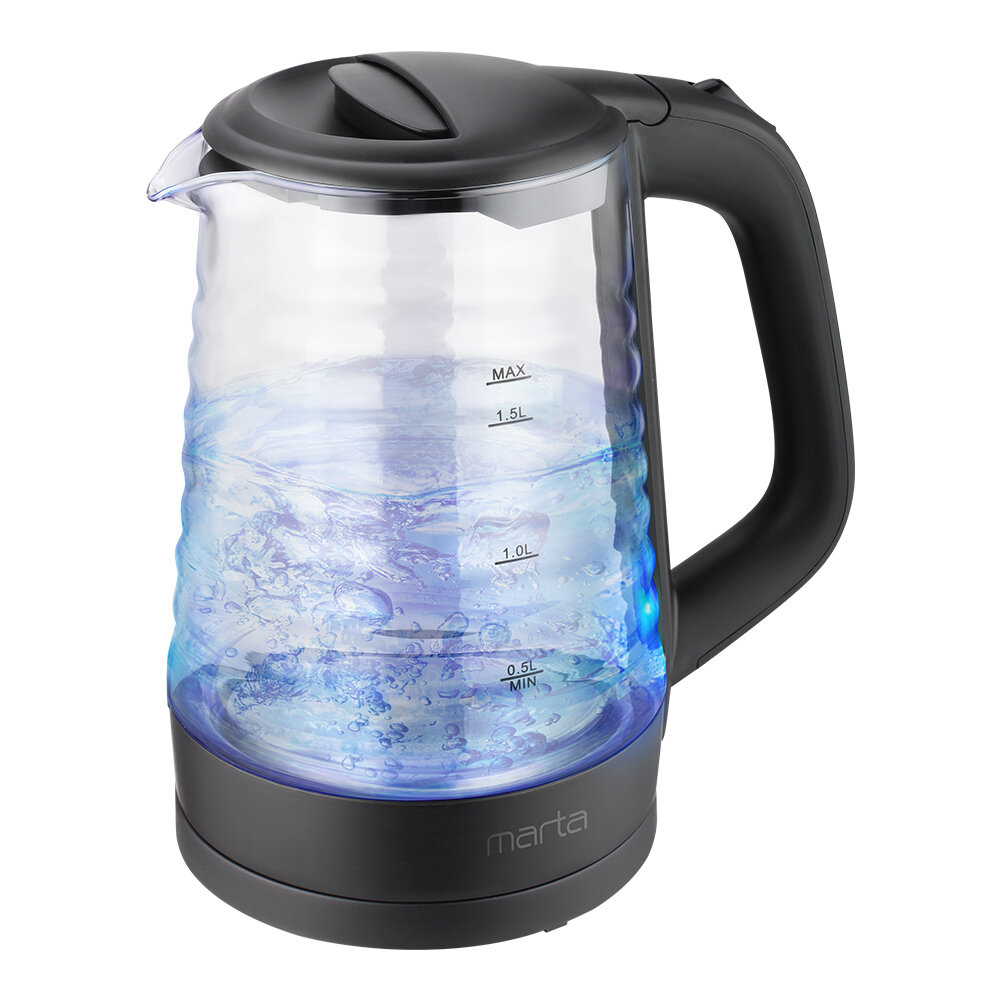 Электрический чайник MARTA MT-KT4655A черный стеклянный с заварником, 1.8 л