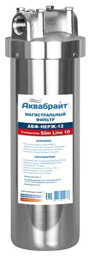 Магистральный фильтр Аквабрайт АБФ-НЕРЖ-12, Slim Line 10", 1/2"