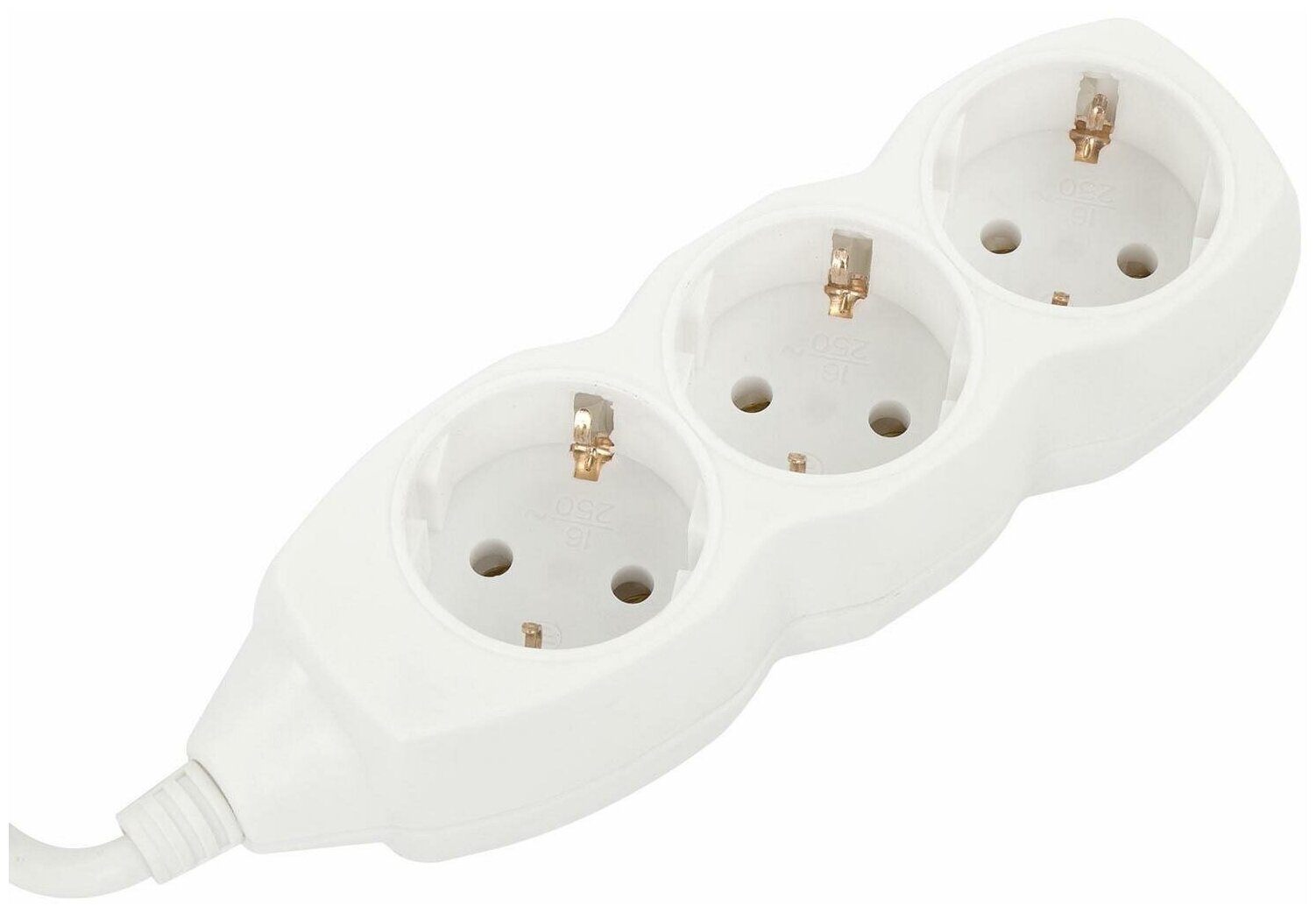 Удлинитель сетевой SONNEN U-135G, 3 розетки, c заземлением, 10 А, 5 м, белый, 511433