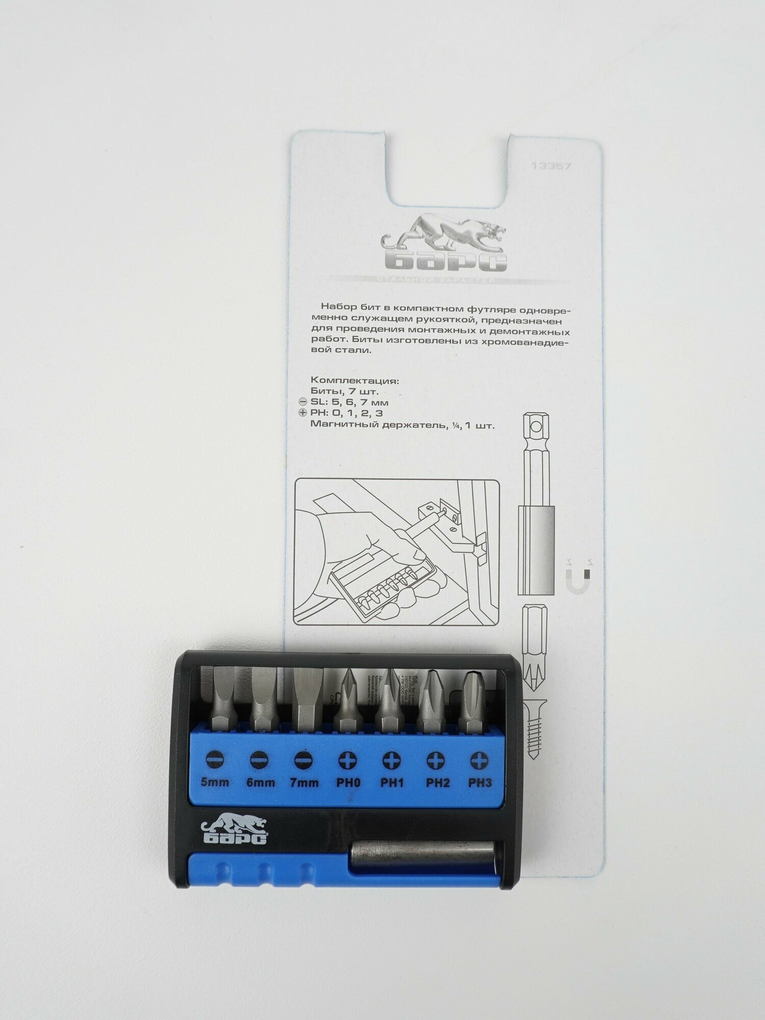 Набор бит с магнитным держателем Барс 13357, CrV, 8 шт Барс 9404583 .
