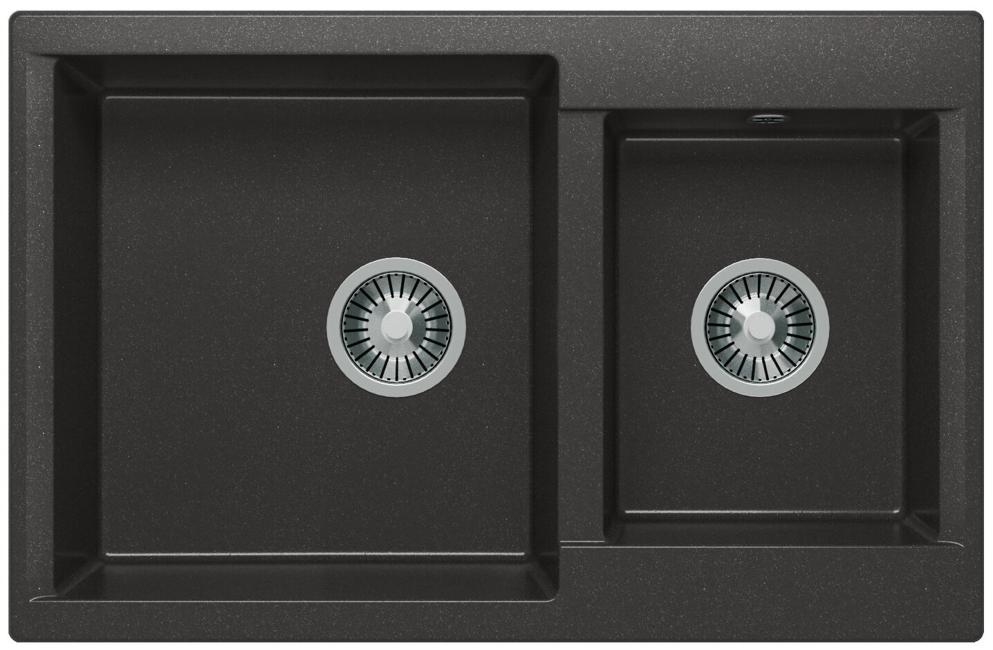 Накладная кухонная мойка 77.2 см, Polygran Brig-772, матовое черный 16