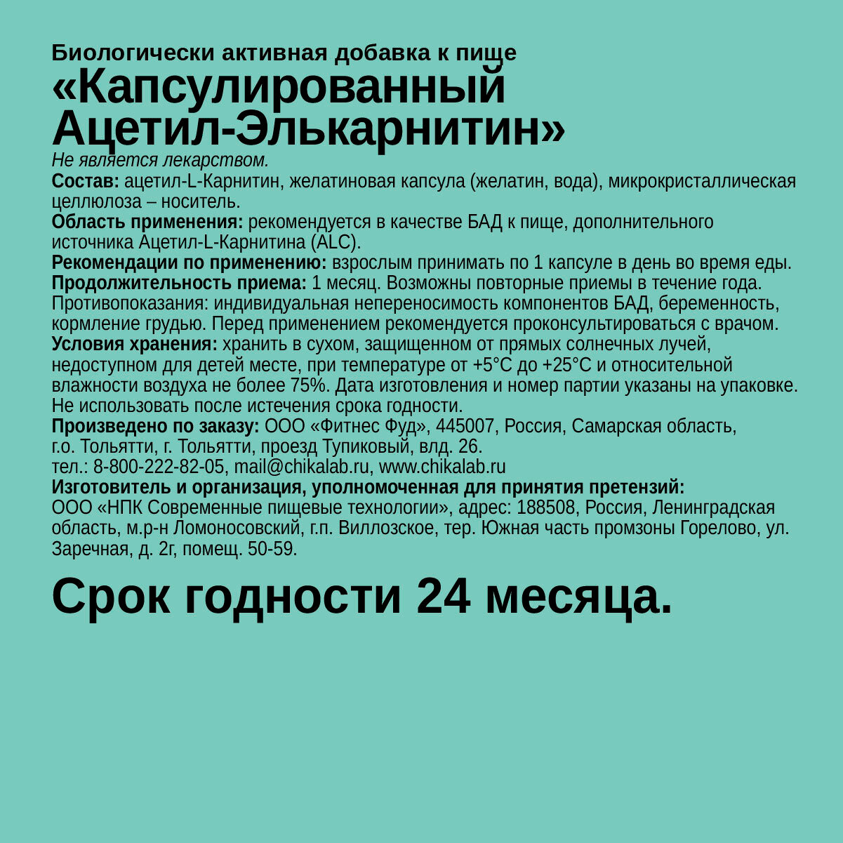Chikalab Ацетил L-Карнитин (Acetyl L-Carnitine), 60 капсул информация: