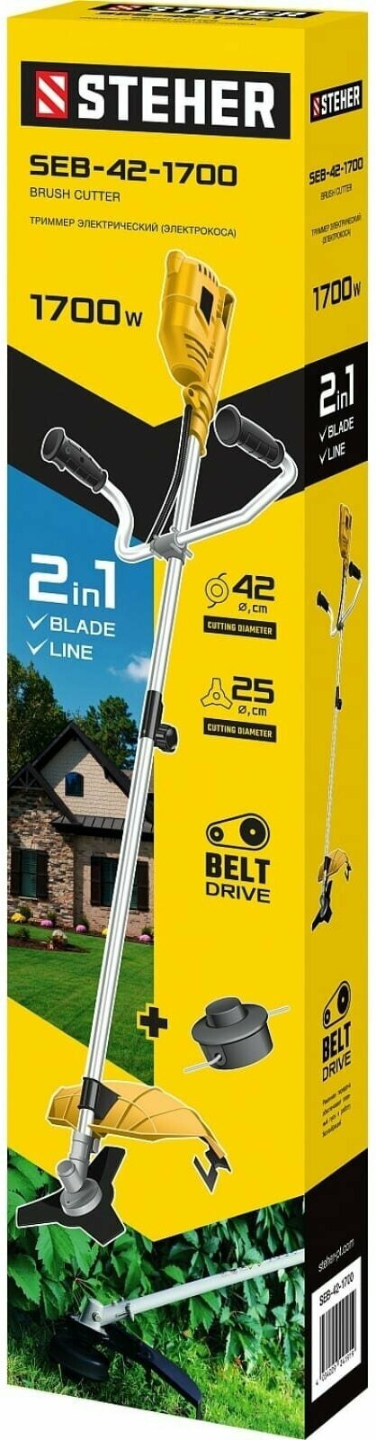 Коса сетевая с ременным редуктором ш/с 42/25 см 1700 Вт Steher SEB-42-1700