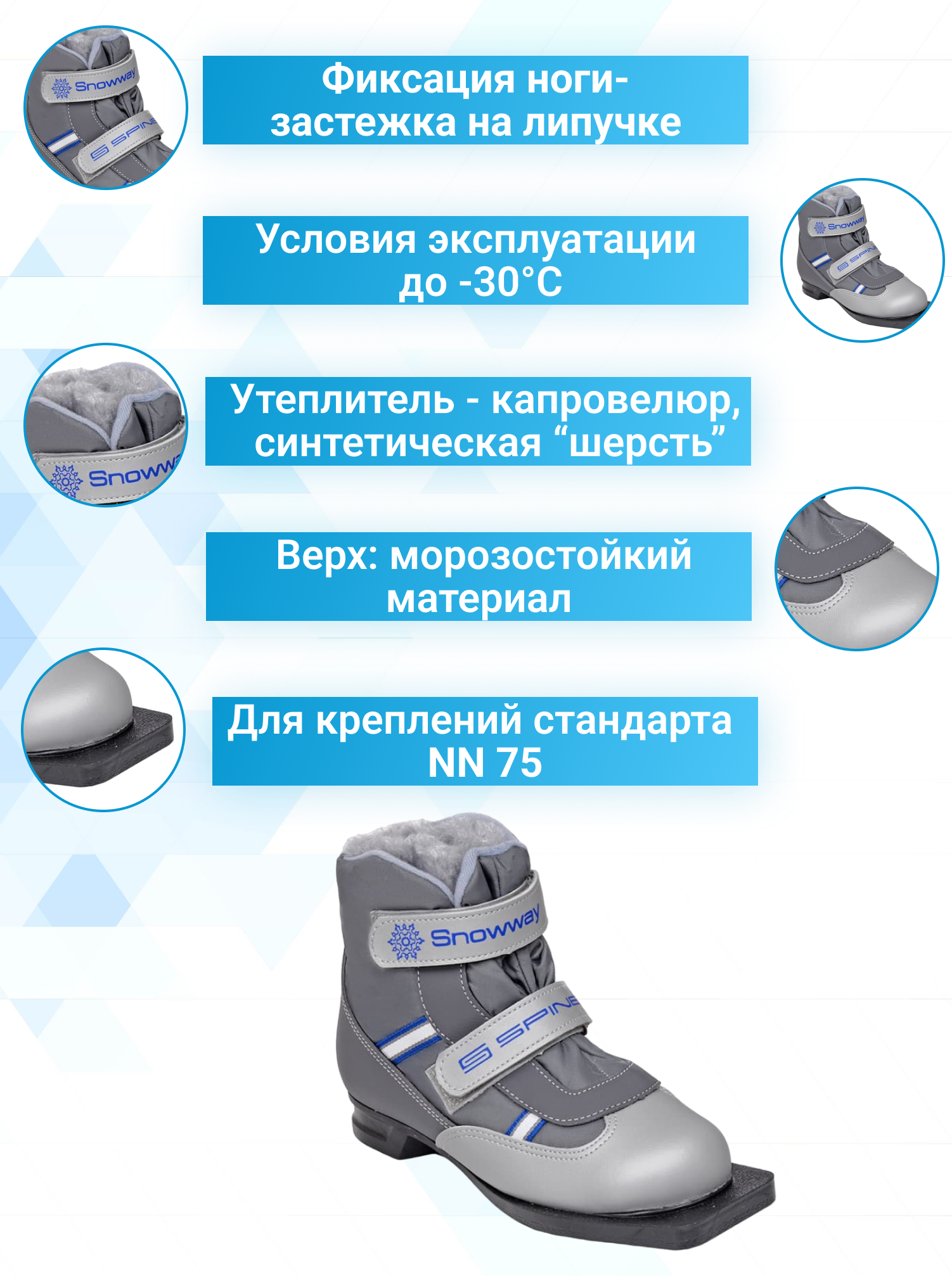 Ботинки лыжные детские 75 мм SPINE Kids Velcro 104 29-30 размер информация: