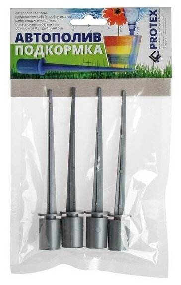 Автополив для комнатных растений под бутылку, регулируемый, серый, из пластика, высота 20 см, 4 шт. информация: