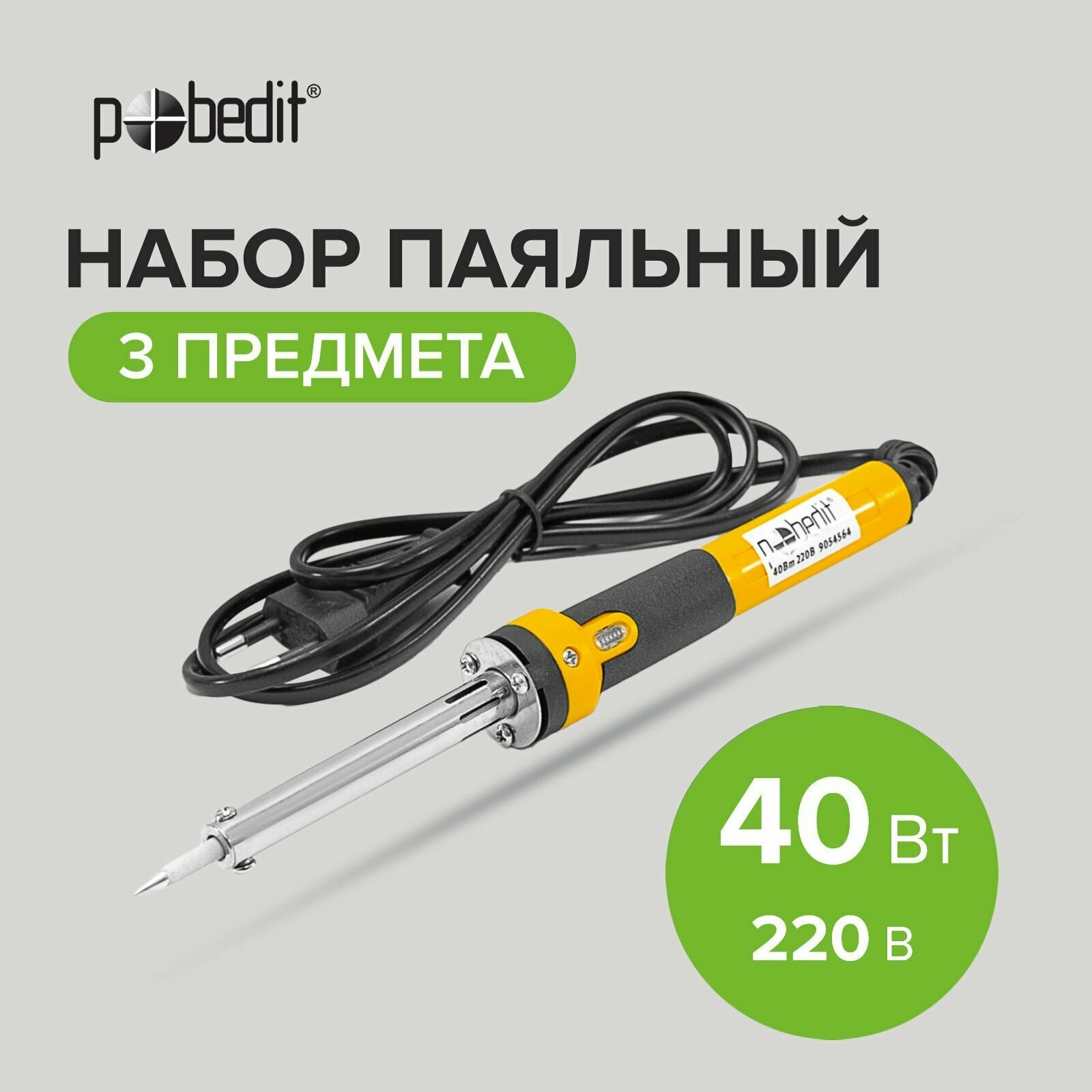 Набор паяльный: паяльник+припой+подставка, острое жало с защитным покрытием, 40 Вт, 220 В, Pobedit