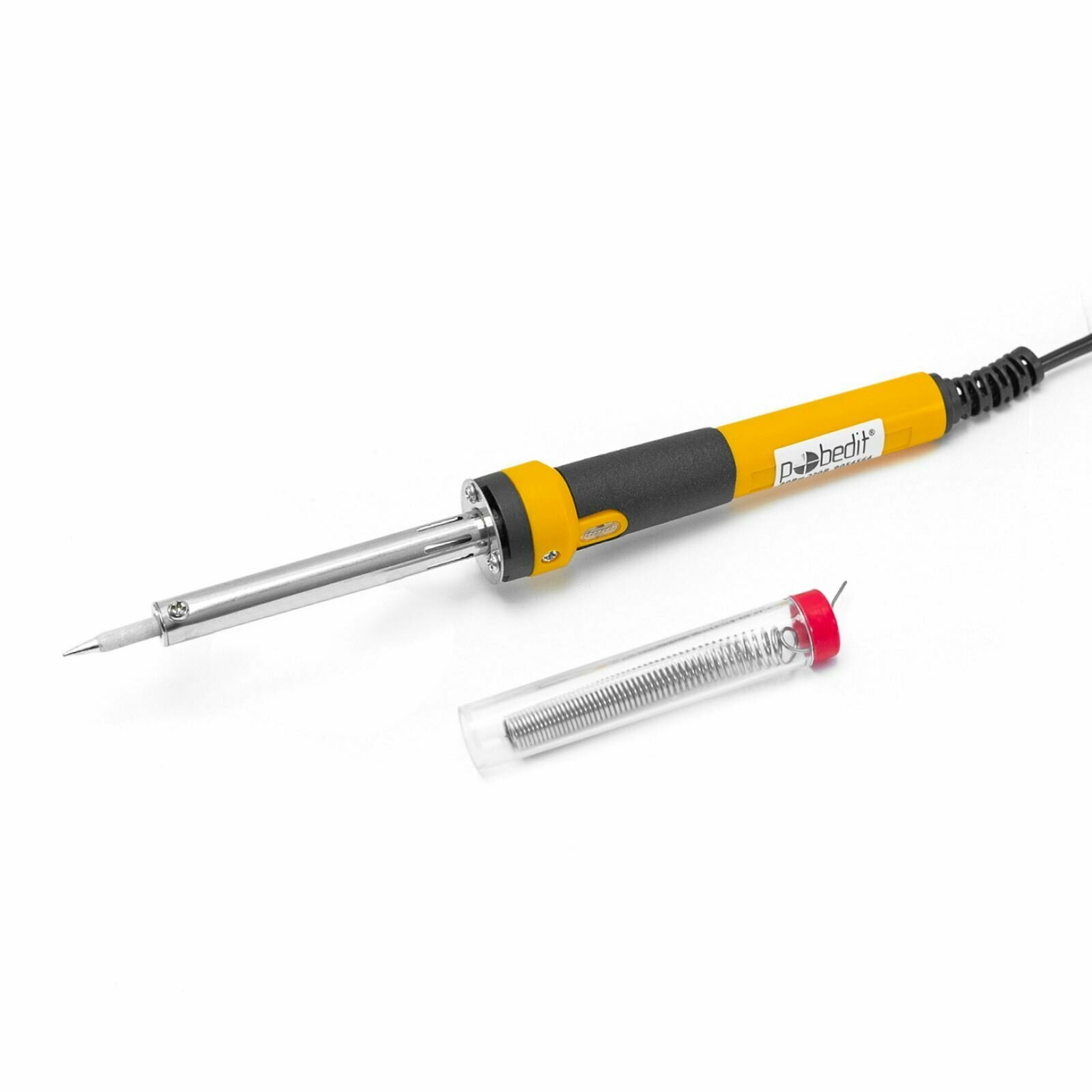 Набор паяльный: паяльник+припой+подставка, острое жало с защитным покрытием, 60 Вт, 220 В, Pobedit