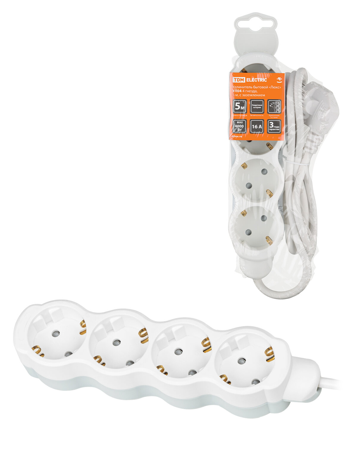 Удлинитель бытовой "Люкс" УЛ04 4 гнезда, 5м, с/з, с з/ш, ПВС 3х1мм2 16А/250В бело-серый TDM (TDM) SQ1303-0237 информация: