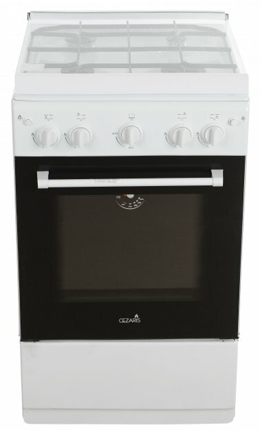 Плита Cezaris ПГ 2150-08, газовая, 4 конфорки, 43 л, газовая духовка, бело-чёрная 9001289 .