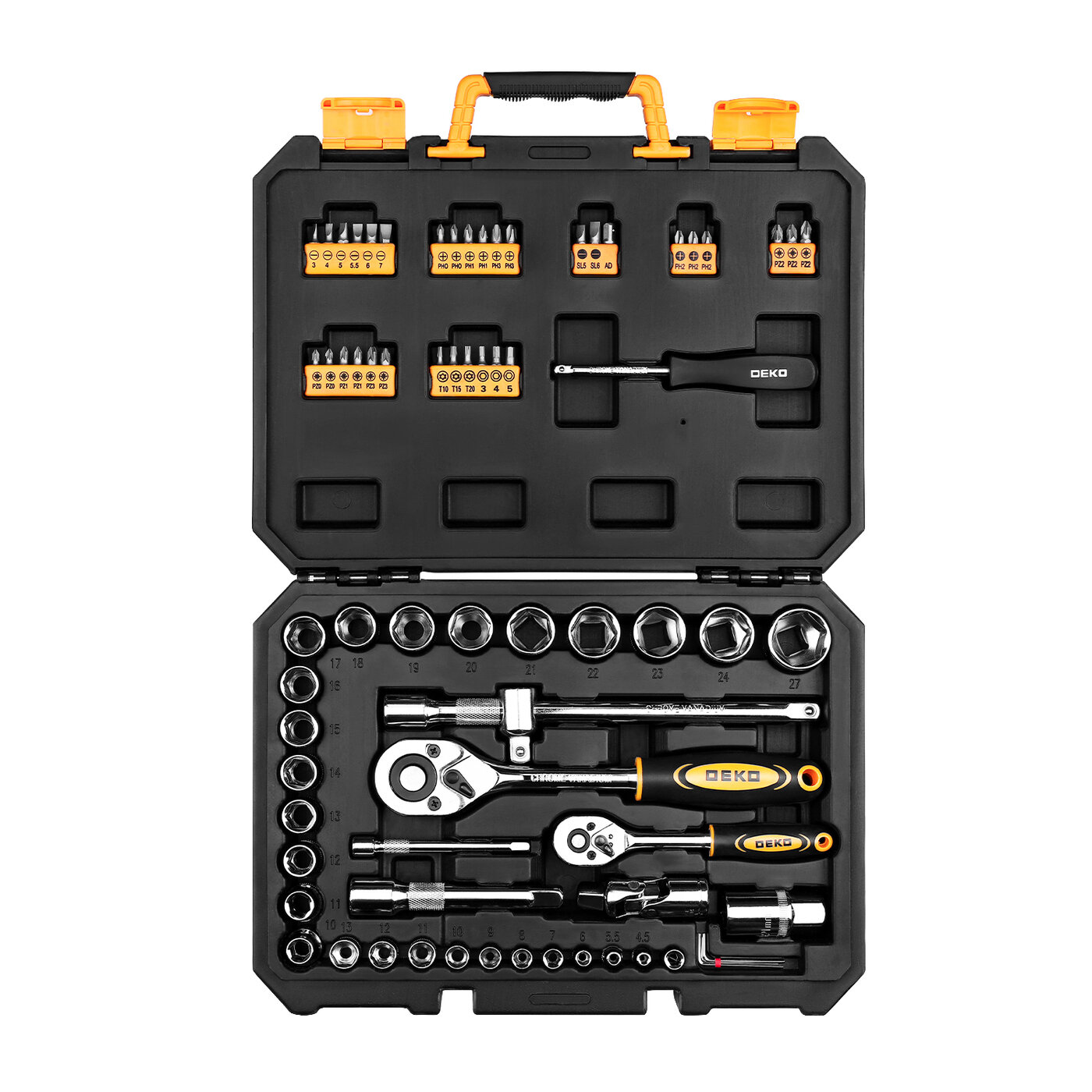 Набор инструментов DEKO DKMT72, 72 предм., черный/желтый