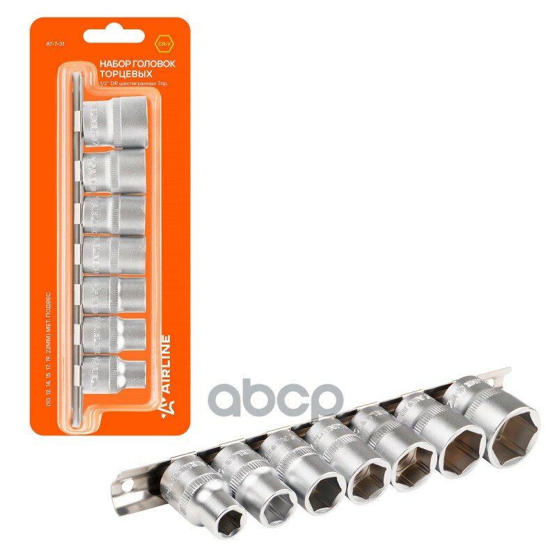 Airline набор головок торцевых 1/2 dr шестигранных 7пр. (10,12,14,15,17,19,22мм) (at-7-31) at731