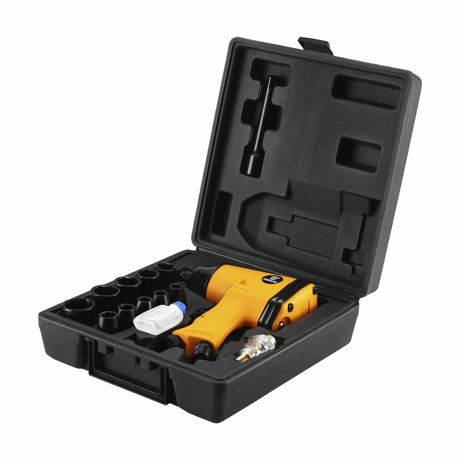 Deko Гайковерт пневматический ударный DKPT01 SET 3 в чемодане с набором 16 предметов018-1101 .