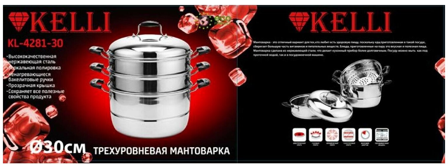 Мантоварка из нержавеющей стали Kelli KL-4281, 30см 3 яруса Келли маленькая пароварка информация: