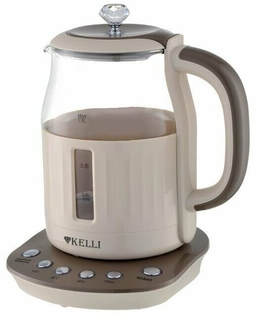 Чайник электрический Kelli KL-1373 / 1.7 л / 2200 Вт / 4 температурных режима / стекло / кофейный