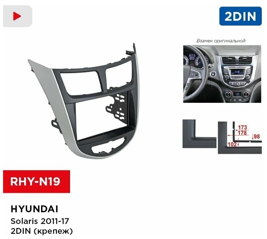Incar RHY-N19 Рамка HYUNDAI Solaris 11-17 2DIN (крепеж) RHY-N19 информация: