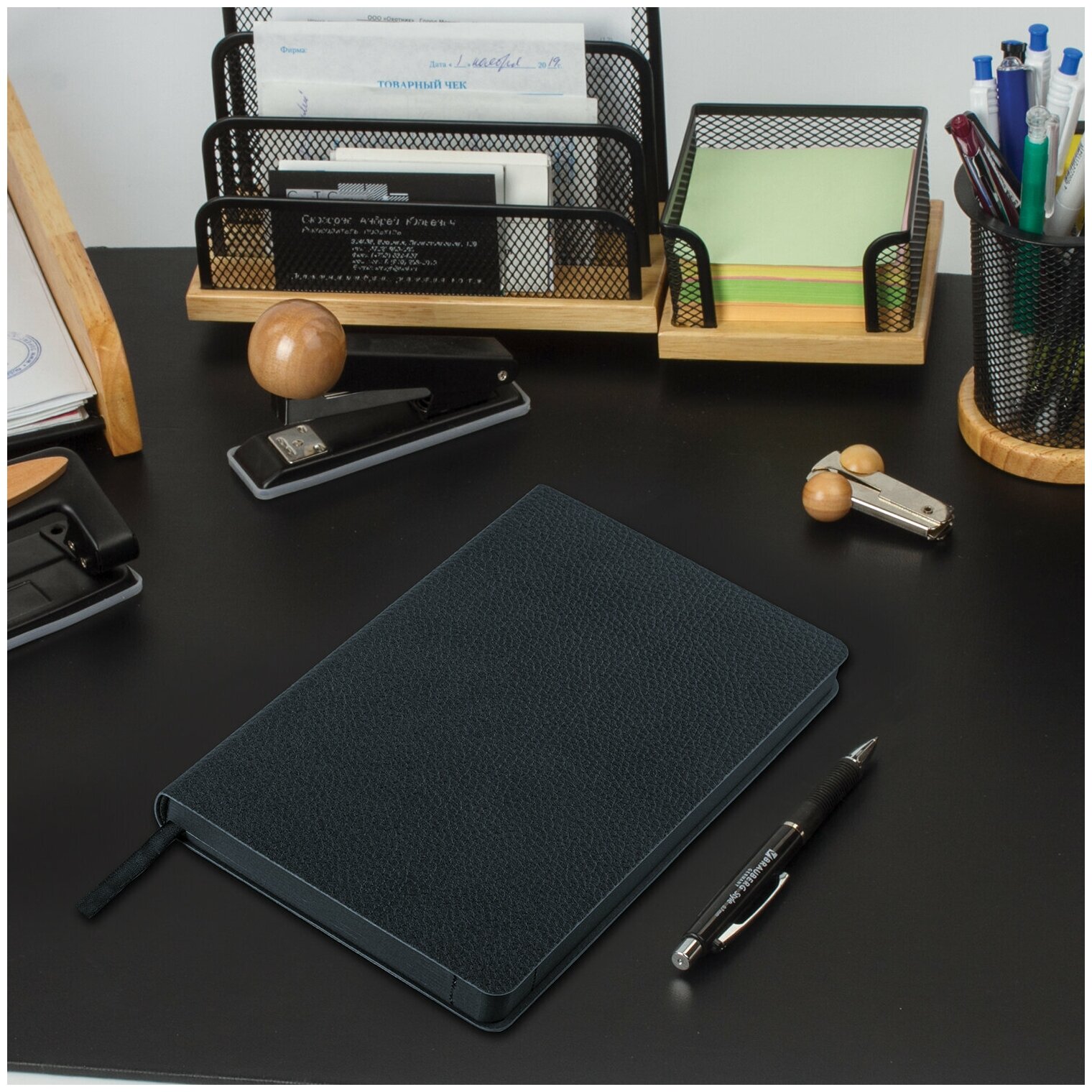 Ежедневник недатированный А5 138х213мм BRAUBERG Stylish под кожу, гибкий 160л, черный, 126224