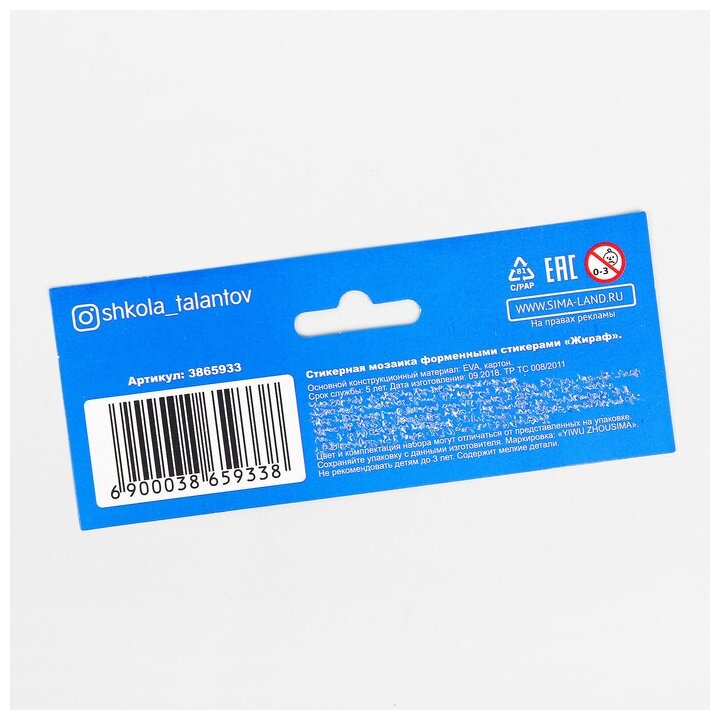 Школа талантов Стикерная мозаика форменными стикерами "Жираф" информация: