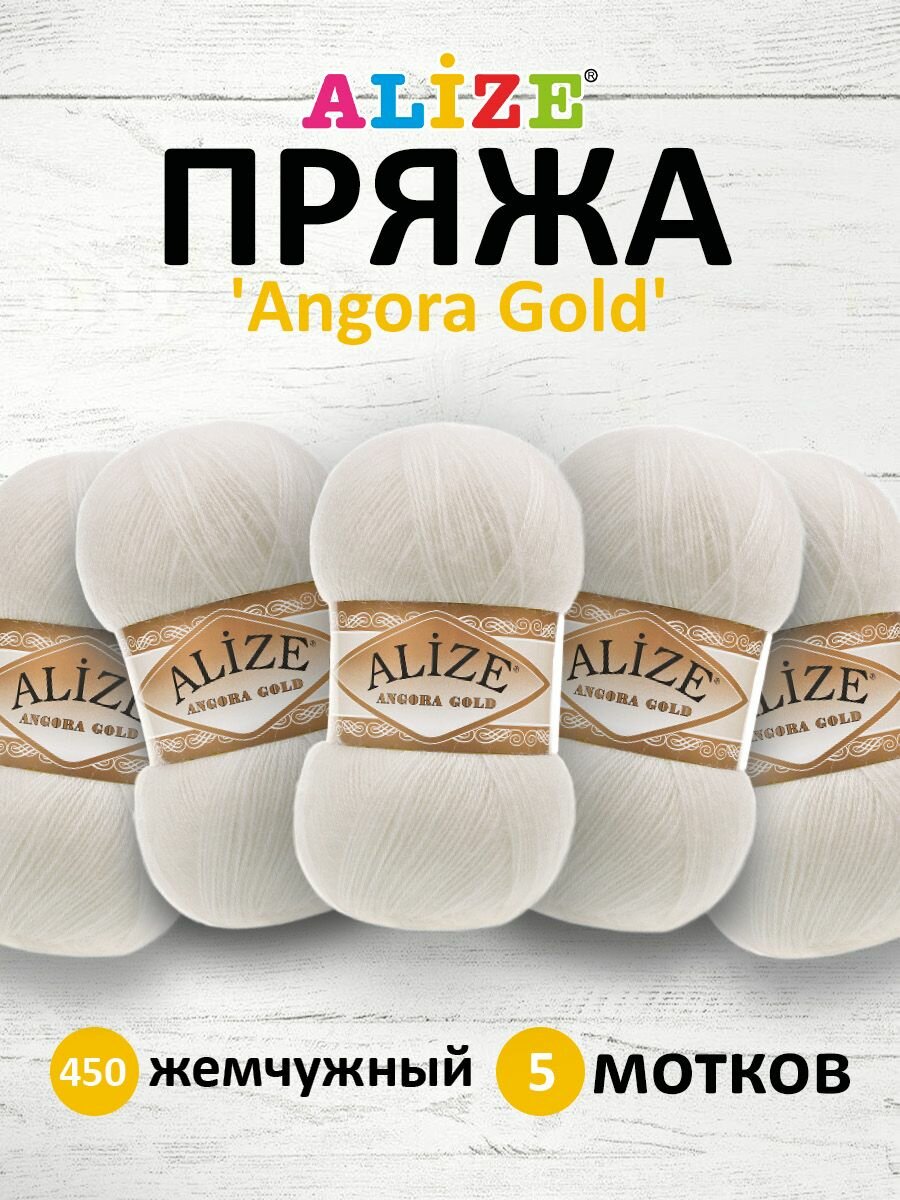 10 цен на Пряжа Alize Angora Gold (Ангора Голд) - 5 мотков Цвет: 450 жемчужный 20% шерсть, 80% акрил 100г 550м