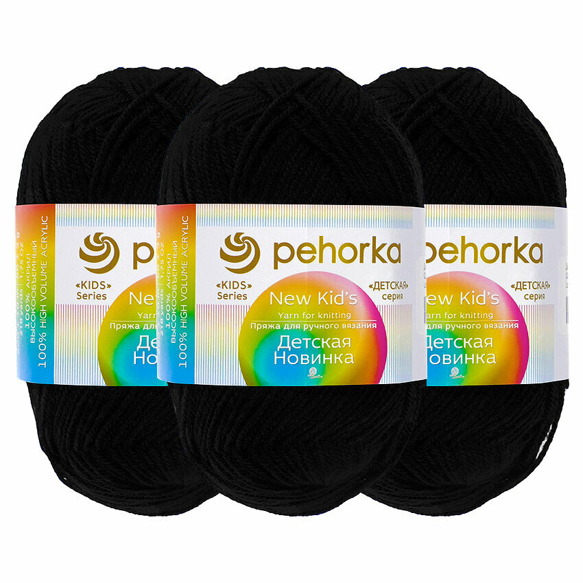 Пряжа Пехорка Детская новинка черный (2), 100%высокообъемный акрил, 200м, 50г, 3шт информация: