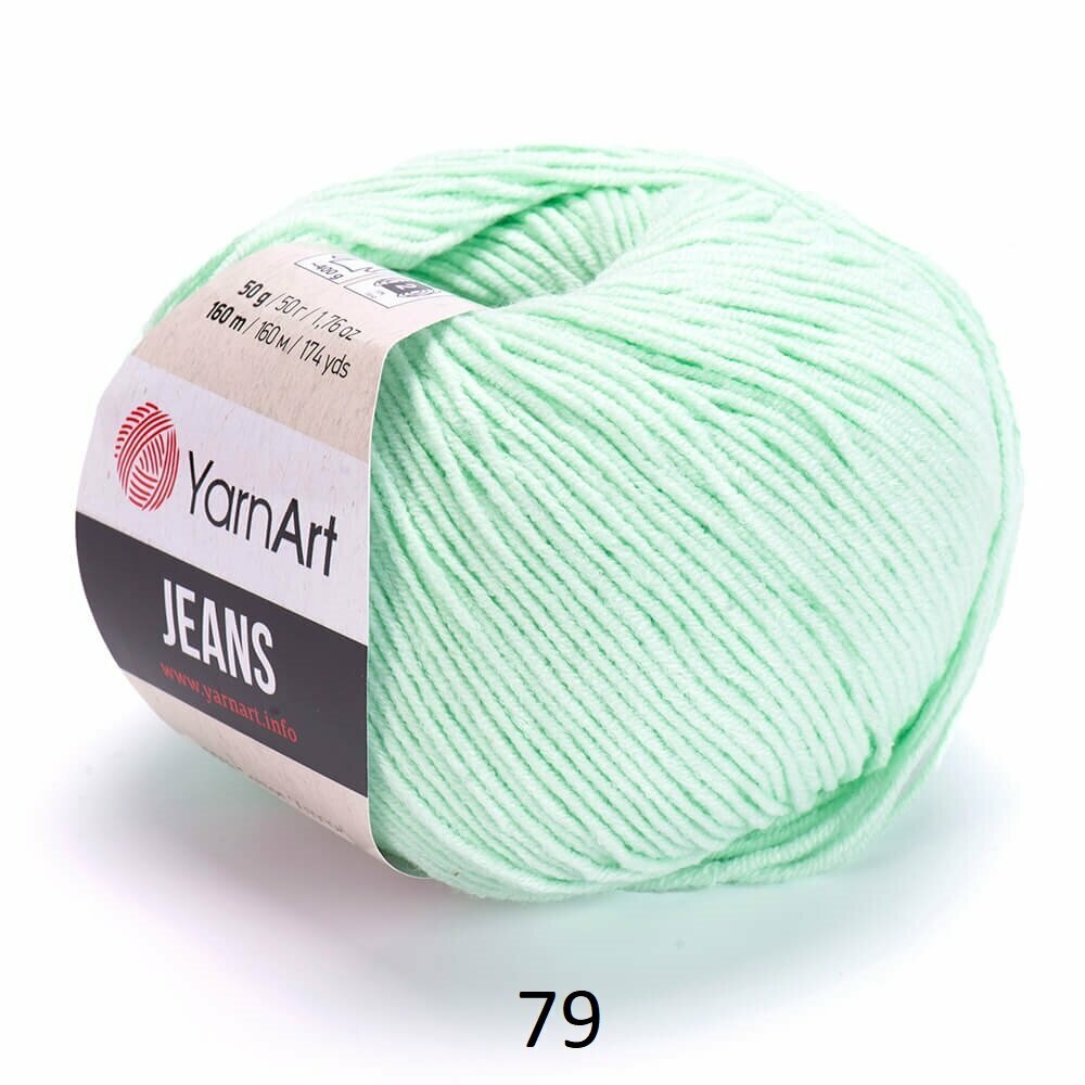 Пряжа YarnArt Jeans мята (79), 55%хлопок/45%акрил, 160м, 50г, 5шт информация: