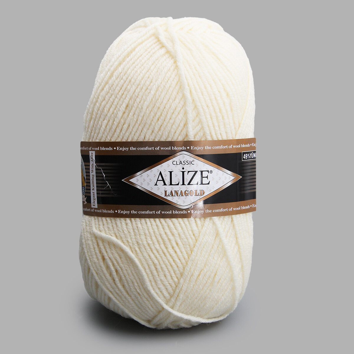 10 цен на Пряжа ALIZE Lana Gold цвет 062 молочный Лана Голд 1 упаковка 5 мотков по 100г по 240м, турецкая полушерсть, теплая, мягкая нить