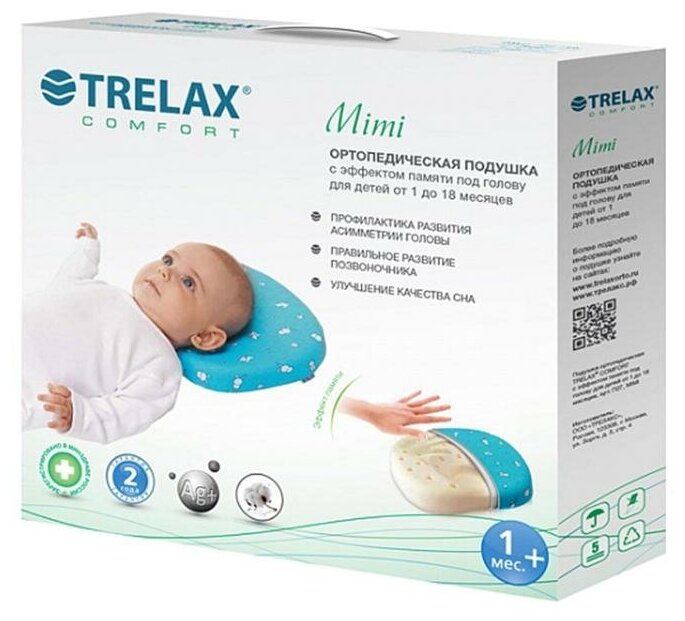 Подушка ортопедическая TRELAX MIMI под голову детская (от 1 мес до 1,5 лет) информация:
