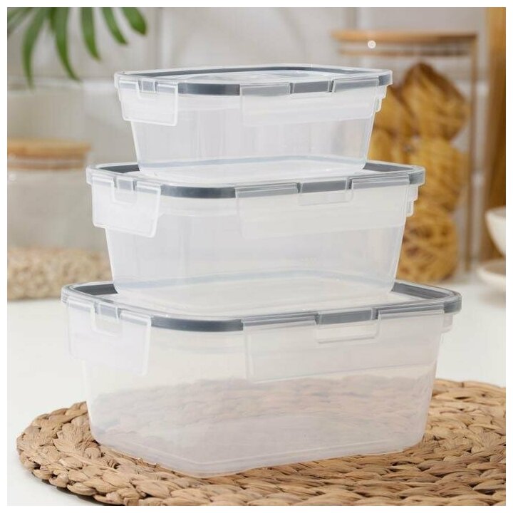 Набор контейнеров для продуктов с защёлкой, герметичная крышка, 3 шт: 350 мл, 750 мл, 1.3 л, цвет прозрачный 679 ₽