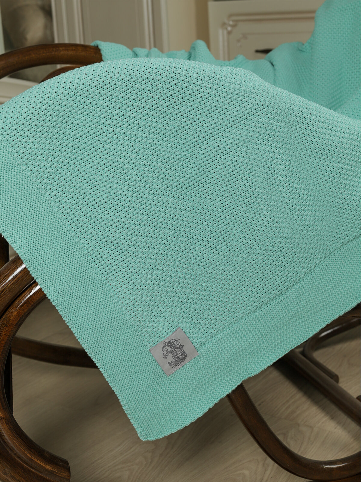 Плед, вязаный, Warm Whiff, бирюзовый, 180х220, хлопок, покрывало для взрослого, сна, дивана, на кресло, большой, тонкий, натуральный, красивый, нежный, натуральный, гипоалергенный