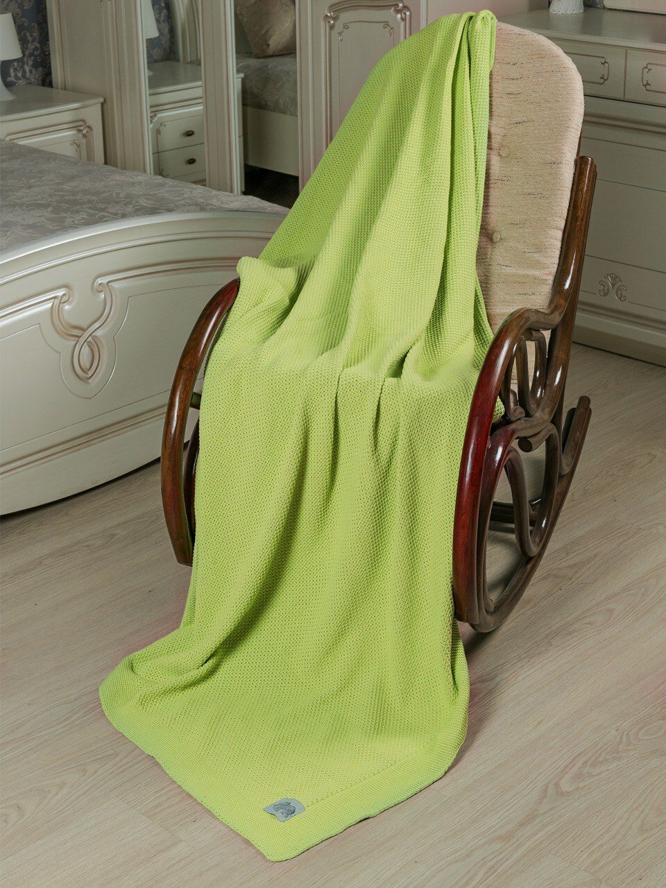 Плед вязаный, Warm Whiff, R-24, светло-зеленый, 120х220, хлопок, покрывало для подростка, сна, дивана, на кресло, большой, тонкий, натуральный