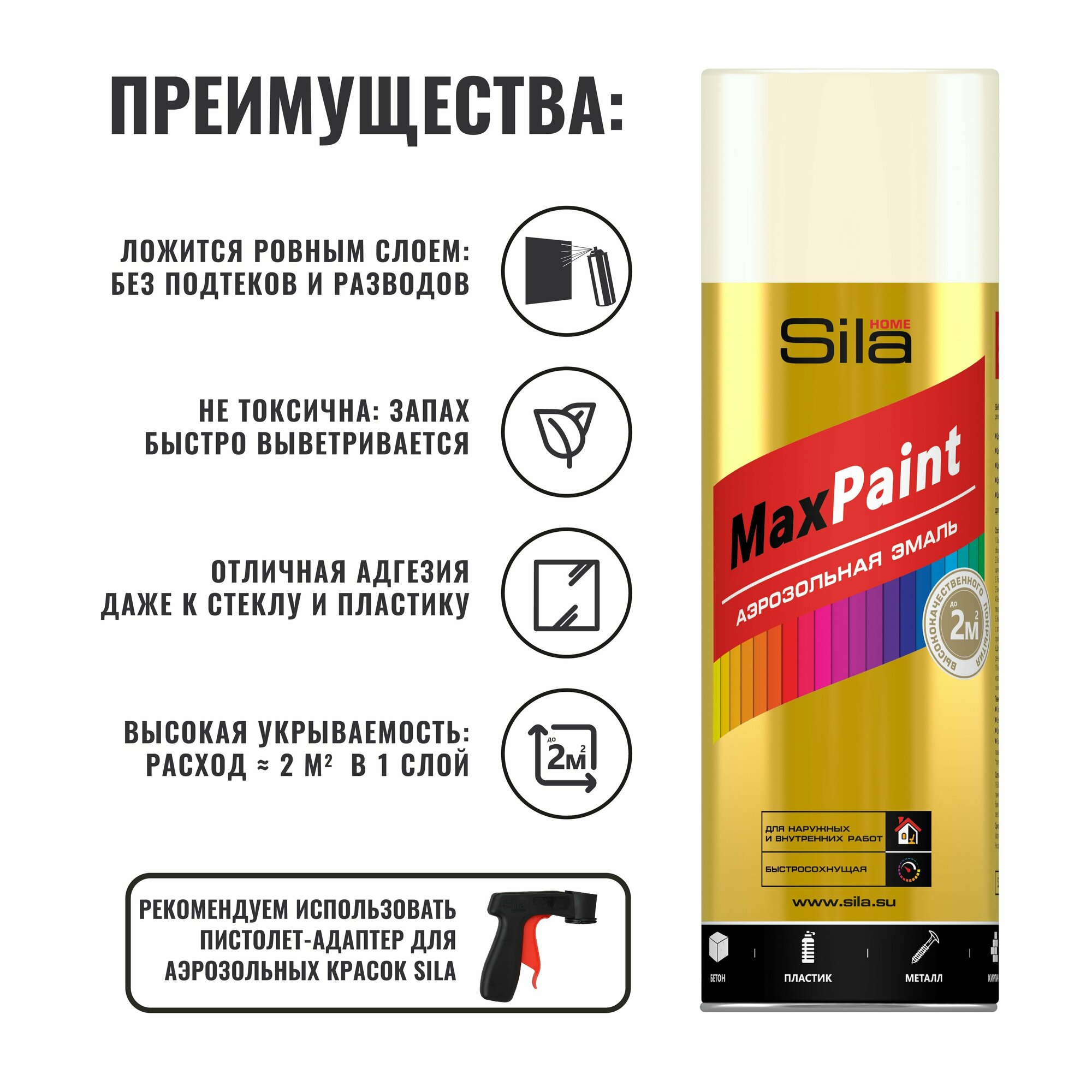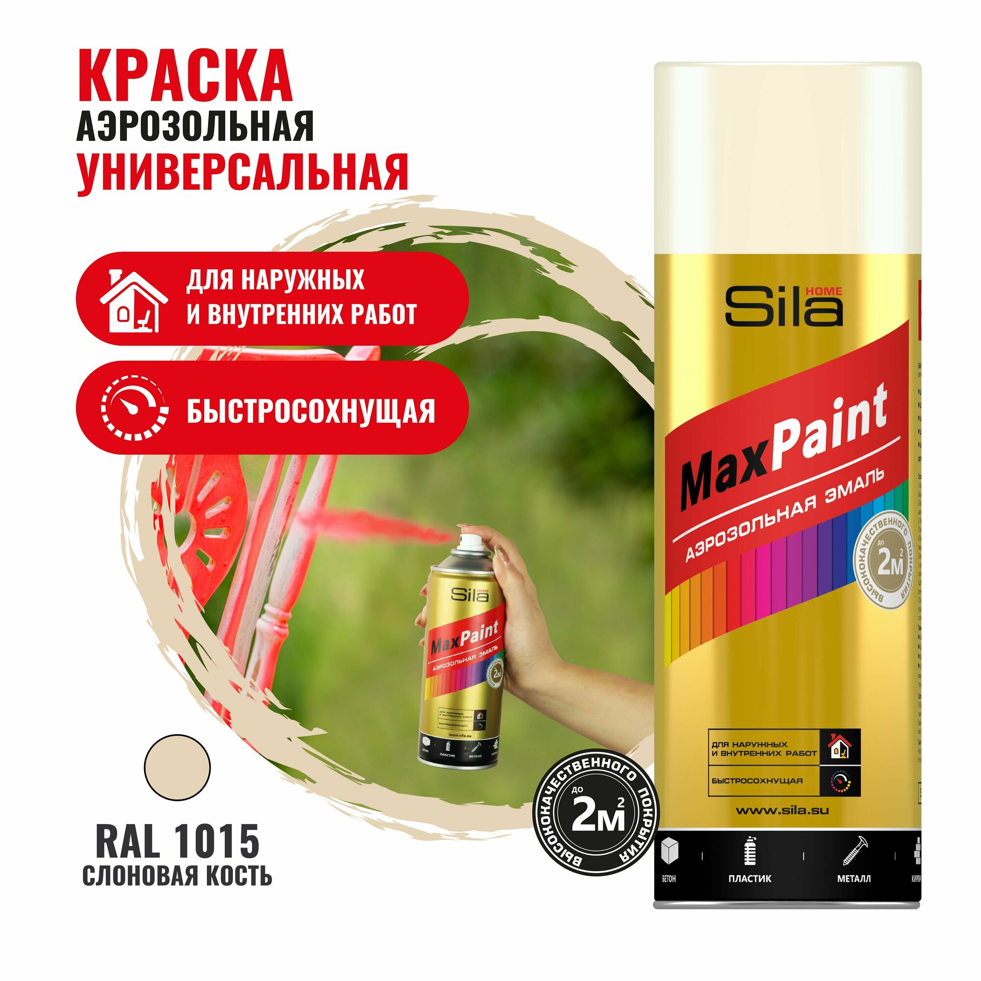 Sila HOME Max Paint, краска аэрозольная, универс., слоновая кость RAL1015, 520мл SILP1015