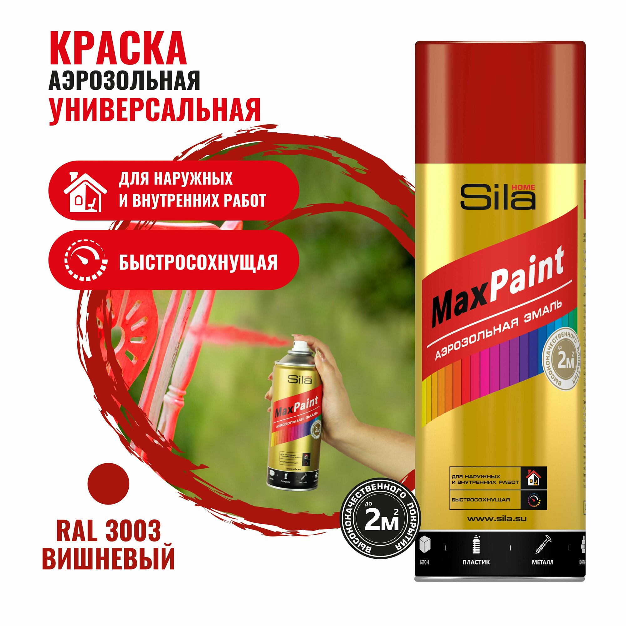 Краска аэрозольная , универсал., вишневый RAL3003, 520 МЛ, SILA HOME MAX PAINT информация: