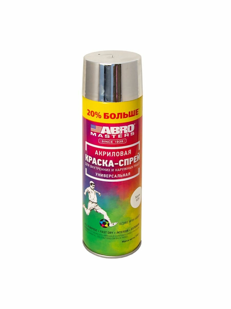 Краска-спрей автомобильная +20% ABRO MASTERS (хром) информация: